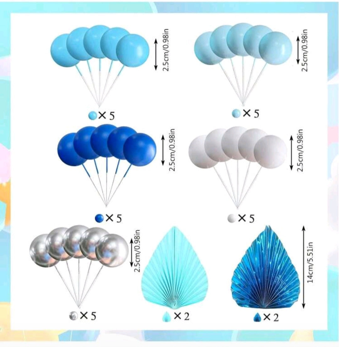 Blue, white and Silver Cake topper decorating Set